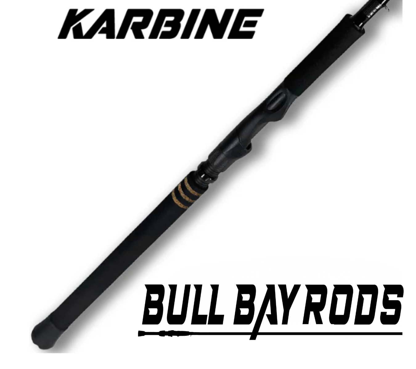 average angler, the Karbine comes equipped with all double-footed, tangle-free guides, all full EVA grips extended in length from our standard rods, designed to sit in rod holders + provide leverage when fighting fish.