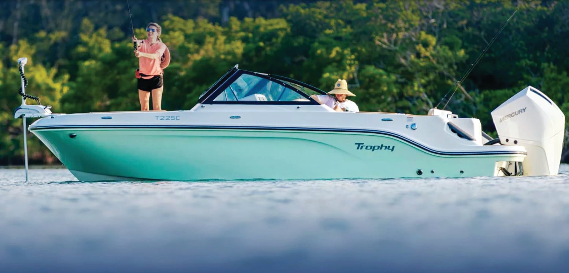 Bayliner’s fishing boat fleet includes a trio of trailerable center consoles (20, 22, 24). Bayliner also offers the Trophy T22SC. This Trophy’s side console layout is a first-of-its-kind within the Bayliner lineup offering consumers a multi-purpose boat with versatility for fishing or cruising to your favorite beachside hideaway.