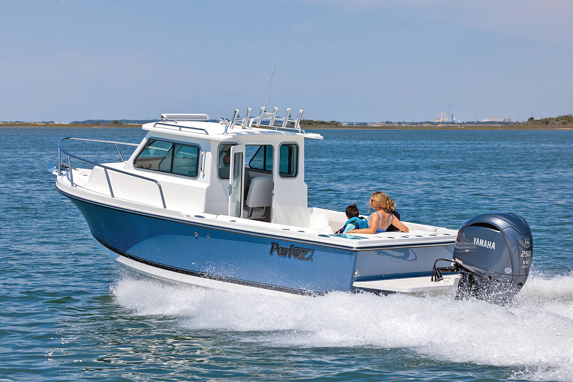 Parker’s 27 Explorer is available with single Yamaha power that ranges from the F200 inline four, the F250 V6 and the popular F300 V6. If you’re going to be carrying a full crew most of the time, either of the two Yamaha V6s would probably be your best performance option. The standard 105-gallon tank will provide enough fuel to power a full day of fun out on the water. The new 227 Sport Cabin’s hull offers 20 degrees of aft deadrise and measures 22 feet, 3 inches, but extends out to 24 feet, 4 inches LOA with the standard outboard bracket.