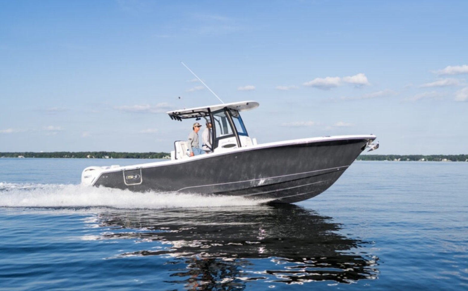 Below deck, the galley boasts two drawer-style refrigerators/freezers, a generous amount of cabin space and amazing water views from the center cabin. Increased storage capacity throughout means that whether you’re out stalking your next big catch or spending quality family time at the sandbar, you’ll have everything you need at your fingertips. Other notable features on the S388 Sport include multiple social zones including a wraparound bow lounge with adjustable backrests, integrated adjustable chaise lounge feature and dedicated audio controls; a fully equipped entertainment center with grill, sink, fridge and dedicated storage; optional Seakeeper system and air-conditioned helm with triple seats and advanced Garmin electronics; a spacious cabin with abundant natural light, comfortable overnight accommodations and a well-appointed galley and head.