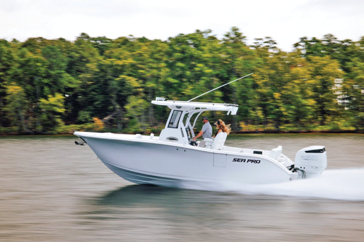 Engine options include either single 250s or 300s, or twin 115s or 150s from Mercury or Suzuki. Her 20-degree aft deadrise running bottom should tame an afternoon chop and the standard 118-gallon fuel tank will give you easy 30- to 40-fathom range in near offshore waters.