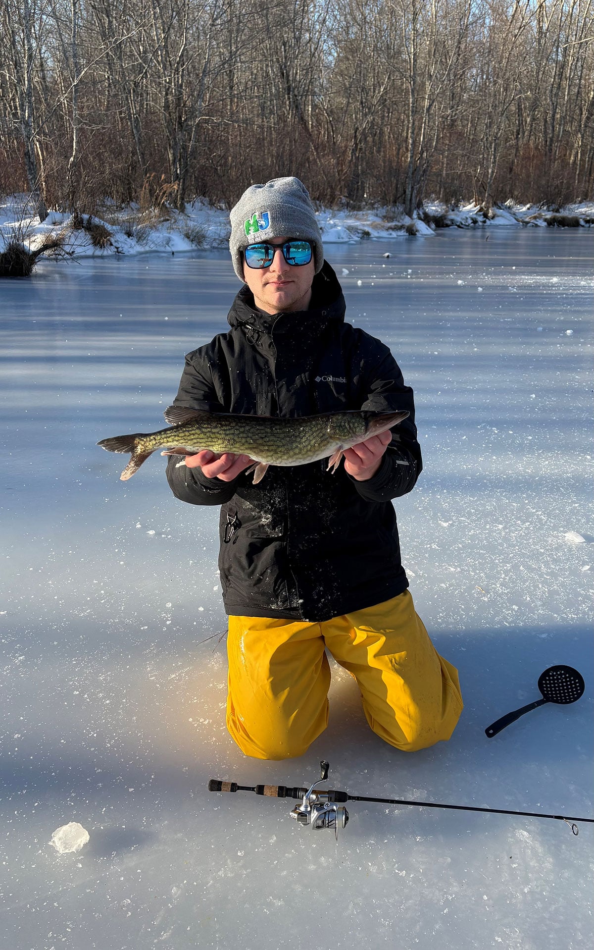 Ice conditions throughout New Jersey were some of the best in recent memory, with many lakes and ponds near the coast also supporting enough ice to fish through, including the lakes on-campus at Stockton University where Grant Johnson got into the action in February.While Capt. Pete Wagner of the Hyper Striper is surely looking forward to spring stripers on the Raritan, the skipper also reported good ice fishing conditions from Northwest New Jersey out into to the Poconos where he also does some guiding out at Lake Wallenpaupack.Bob Gasparovic emailed The Fisherman back on January 7th reporting that he and good friends Pamela and Drew found a good time on a Sussex County lake with largemouth bass, yellow perch and this slammer rainbow trout on a tip-up during a weekend trip.It won’t be long now. Rajere long, AKA Bagboii Scoot, with a jumbo striped bass caught and released on the Delaware River in early April of 2005, somewhere south of the Delaware Memorial Bridge. Bagboii was using bloodworm wrapped inside mesh, often referred to appropriately enough as a bloodbag.