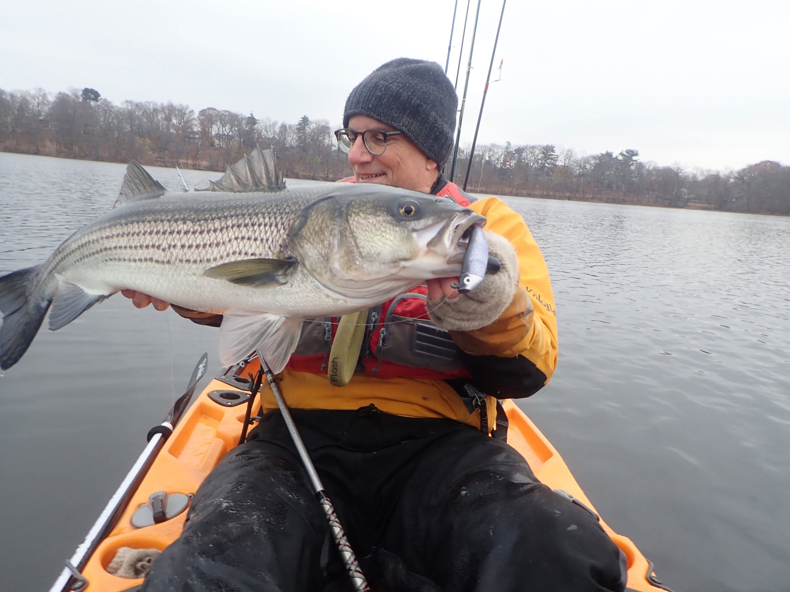 When I bought a fishing kayak in 2003, part of my calculus for the purchase was extending my fishing season; I hadn’t really considered kayaking in February. As the striper season ended in the fall, I realized that I wasn’t really geared up for winter fishing, but I was able to get out on a few good weather days as the calendar moved toward Christmas. Those trips proved to be more successful than if I had been shore fishing and this opened my eyes to the opportunity to go harder for stripers through the winter.
