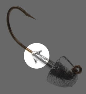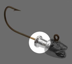 This is a very popular jig head style for anglers looking to deliver a soft plastic—especially a shad body—in deep water. The weight-forward, flat-side design produces very little water resistance on the drop so less weight is required to go deep. The flat sides also produce a very stable swim, cutting through the water and allowing the attached soft plastic to work its magic. I like to trim my soft plastics to fit tight up against the back of the jig head for smooth, finished look. Perhaps this is more important to me than it is the fish, but it has served me well for many years.