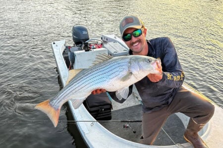 One of the best attributes of the fishfinder is that if the angler wants to delay setting the hook (think huge bait and letting the fish gulp it down), they can set back and free spool their line. The bank sinker will lie still as the line passes through and the fish can carry off the bait without feeling any resistance. Then the fishermen can slowly reel in the slack before initiating a textbook hook set. Since most fluke fishing is done while drifting, occasionally the line will get wrapped around the sinker slide. When this happens it’s best to retie the rig and dispose of the monofilament leader that gained some twist. Monofilament has memory and will spin up the same way on the next deployment. I have personally taken a pile of doormat fluke over 10 pounds, including my personal best of 15.2 pounds with this set up. It’s simple and deadly.