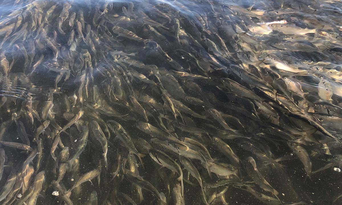 I love artificial lures; I like looking at them, I like collecting them and I like using them. Sometimes to my own detriment. Poppers, swim baits and soft plastics will take a few fish here and there, but there is nothing more frustrating than having bait schools right in front of you with fish feeding on them and your fancy artificials not getting a second look. Don’t listen to me, go ahead and bring along your smallest spooks, shortest Mag Darters, and a selection of 4-inch soft plastic jerk shads just in case. But like the song says; “there ain’t nothing like the real thing baby.”