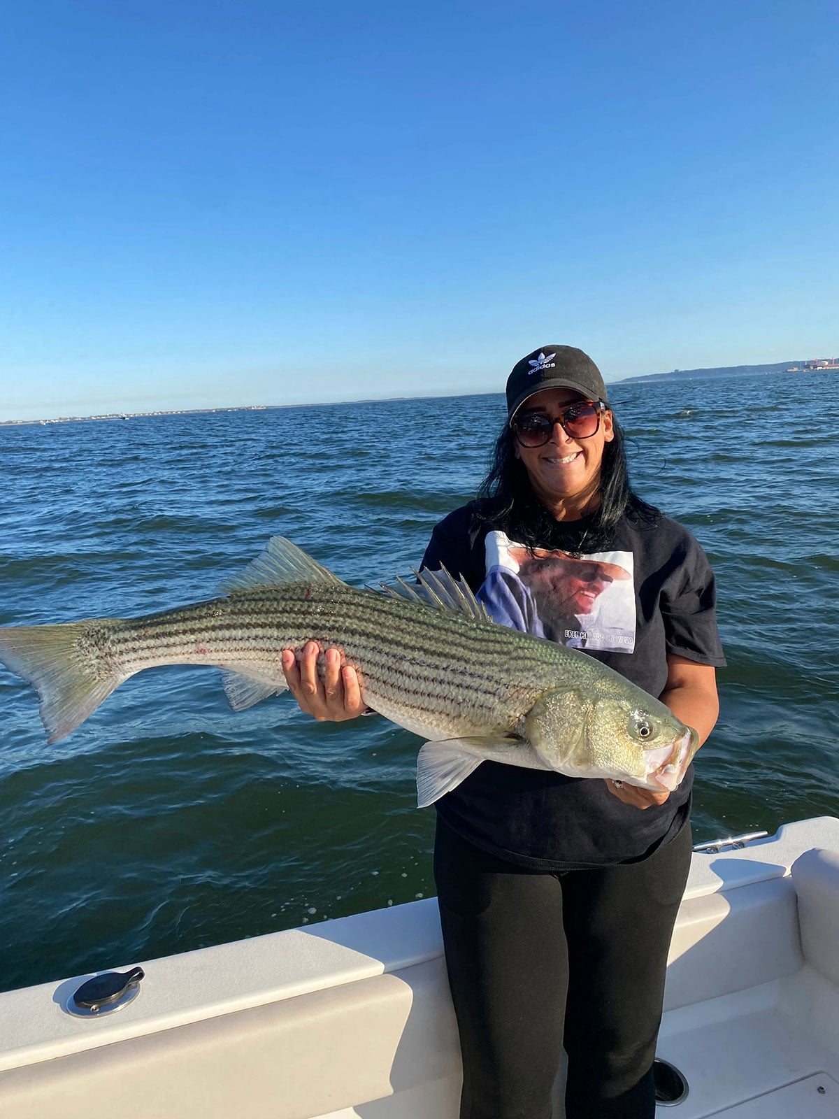 Sheila Miranda was aboard the Reel Beauty fishing team in October and trolled up this striper near the Ammo Pier on Raritan Bay on a white mojo.Kurtis Walrath said he was “blessed with gentle seas and memories that will be talked about for a lifetime” during a 36-hour canyon trip aboard the Gambler in the fall. “The action was absolute mayhem,” Kurtis said of the tuna action.Tom Wisz shows off a 31-inch striper caught while fishing the beach at Sandy Hook in late October during the fall run of ’24.Joe Sansome with a Sea Girt Reef blackfish. Remember, after a brief closure as of March 1, blackfish reopens again in New Jersey for the month of April.Shawn Smith fished aboard his pop’s boat, Fishin Fool, back in October, landing five “overs” while diamond jigging under birds. Shawn said his best friend had the biggest fish of the day, a 40-incher, eclipsing his previous “personal best” of 17 inches on the Delaware.“I caught a juvenile cobia in the Barnegat Bay while fishing for blowfish,” reported Mark Twardziak. While clearly a smaller juvenile, expect the cobia regulations to change at some point this season on the bigger specimens.Bob Collins said he was casting everything he could – bucktails, sand eel imitations, avas with teasers- but once he changed over to an SP Minnow he scored on the third cast one morning last November.Al Siperstein and Bob Kita play tag team tuna on these two yellowfin boated from Capt. Stuart Borker’s 35 Bertram Fun Tyme out of Glimmer Glass on the Manasquan last fall while fishing offshore in the 100 Square.Holden Pileggi left Bucks County with his dad Nick at 4 a.m., hit the beaches of Lavallette by 6 a.m. and found his first ever surf striper (a 33-incher) during a fall blitz by 12:30 on an ava 27 with a sand eel teaser. Well done Holden!Fish Hawks Kenn and Valerie Seefelt got into the bass madness off Island Beach during the fall while livelining bunker on circle hooks and jigging 8-inch flutter spoons. Val’s fish (top) was about 44 inches, while Kenn’s (bottom” taped out at 38 inches.