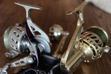 My typical shore outfit is a spinning rod or 8 or 9 feet, from boat or kayak a 7-footer is perfect. I like a soft tip, and fast action for flipping this rig into the feed zone. I prefer 20-pound braid for all my albie outfits, and will typically use 15-pound fluorocarbon for my leaders; however, I have gone to 12 when the fish were particularly sensitive.