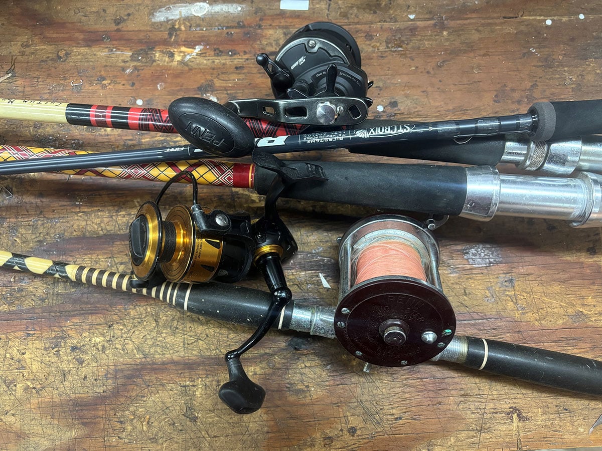 The first place (but not the easiest) to begin is with the reels. Hopefully, the reel was hosed down with fresh water after each use in salt water. Salt can be very corrosive, damaging the internal workings of the reel and preventing the spool and/or drag from functioning properly. The first thing you should do is strip off the old line, which will give you a better picture of what needs to be done. If the spool looks bad, chances are the reel needs a good cleaning, and there are several ways to accomplish this. First, a good shot of reel lube, properly applied, just might do the trick. Some reels have a spot where it says “oil.” If so, apply oil there, followed by checking the smoothness of the reel—both when cranking it and testing the drag function. That might be all you need to do, followed by a light coat of lubricant on the exterior. Then, store the reel in a reel bag or wrap it in a rag and place it in a dry location until ready to use again.