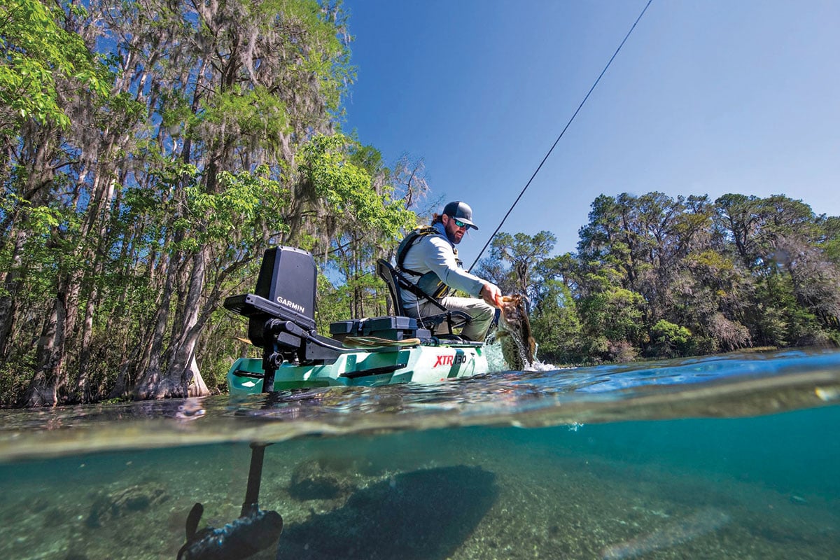 The legendary performance of Force trolling motors is now available for your kayak as well. Introduced last July, the brushless Force Current trolling motor was purpose-built for kayak anglers looking for a rugged propulsion system with superior maneuverability. Keep an eye on your integrated chartplotter and fish without setting the rod down, with wireless steering and throttle pedals included with select bundles, or use the handheld remote for gesture steering. Get on and off the water fast with simple and intuitive installation and removal. The 12-volt model produces 30 pounds of thrust, which the 24-volt version increases that up to 50 pounds, with integrated smart anchor lock and multi-band GPS to hold position in wind or current. The MSRP for the portable Force Current is $3,600 and it’s available with a wireless hand controller or with foot pedals at an added cost.
