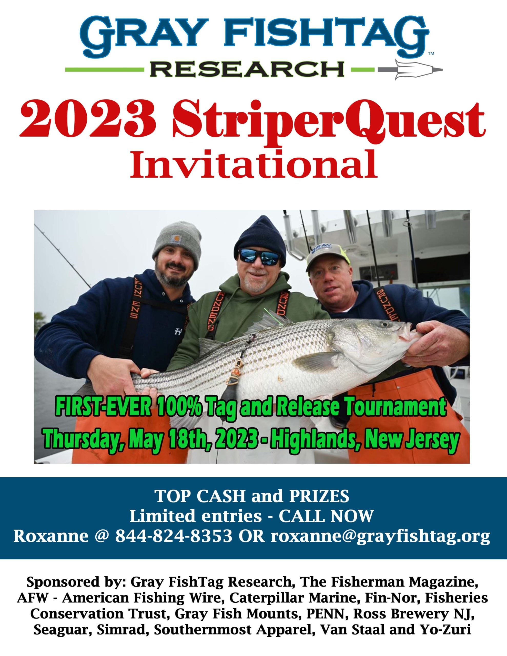 Gray FishTag Research is heading back to the northeast to continue our Striped Bass study as we partner with The Fisherman Magazine, Title Sponsor AFW – American Fishing Wire, sponsors, captains, and anglers who are eager for more data. This year we are extending invitations to our supporting fishing clubs and anglers who want to be a part of the excitement and YOU are invited. Space is limited and we need to hear from you as soon as possible to register your team.